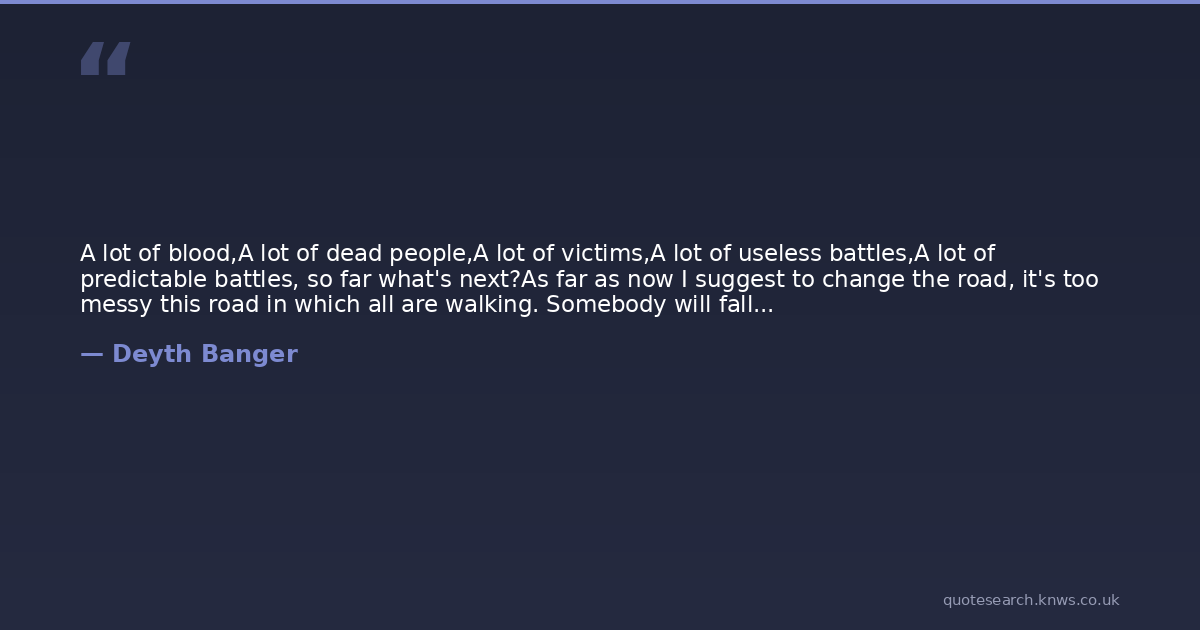 A lot of blood,A lot of dead people,A lot of victims,A lot of useless battles,A lot of predictable battles, so far what's next?As far as now I suggest to change the road, it's too messy this road in which all are walking. Somebody will fall...