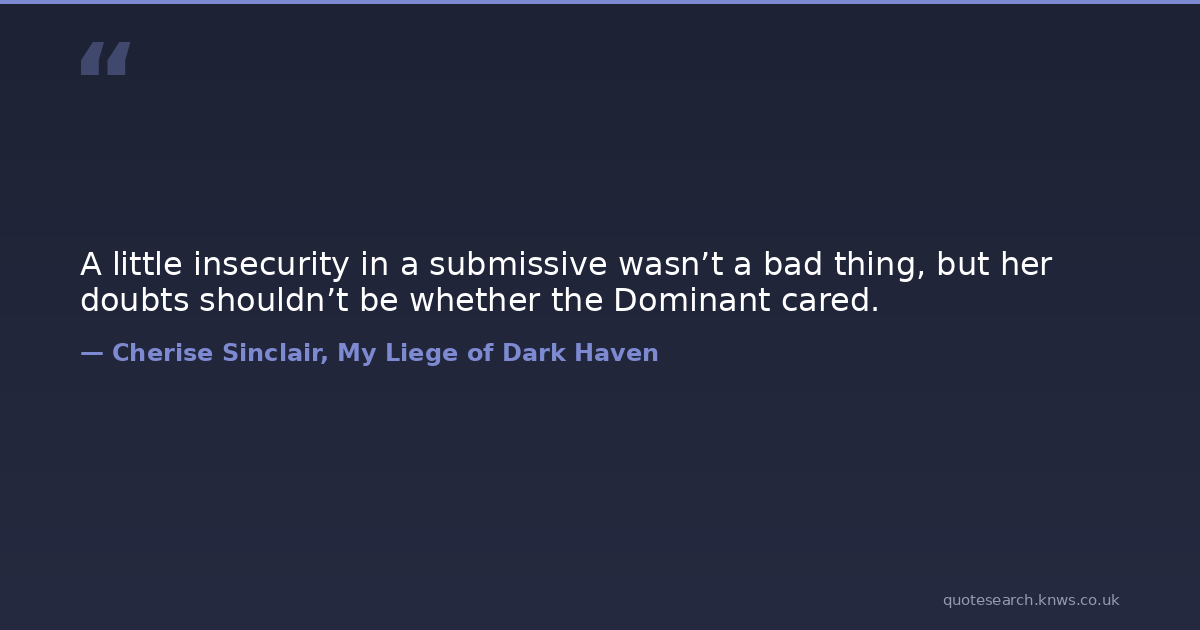 A little insecurity in a submissive wasn’t a bad thing, but her doubts shouldn’t be whether the Dominant cared.