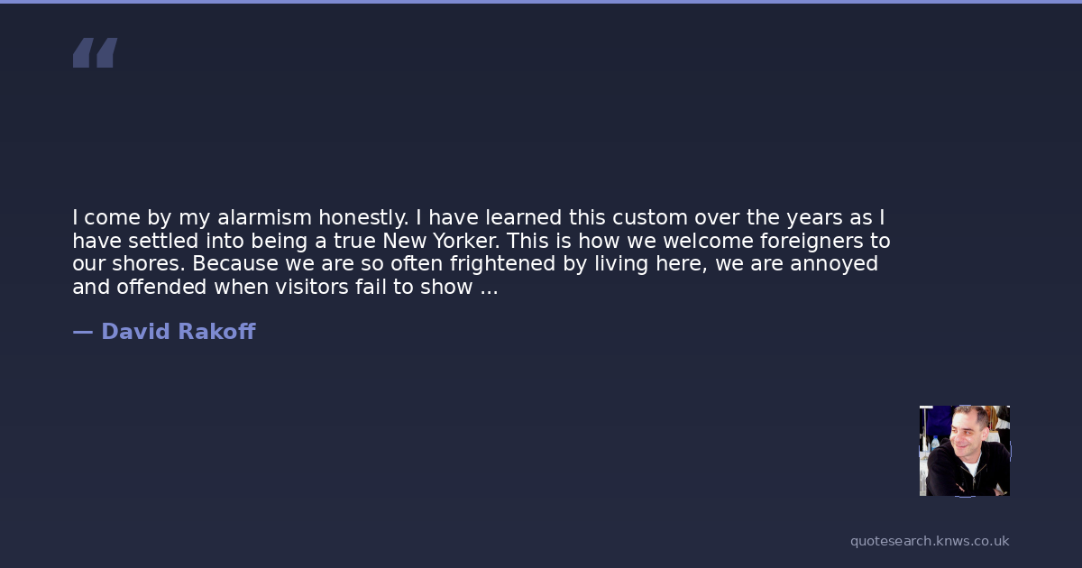 I come by my alarmism honestly. I have learned this custom over the years as I have settled into being a true New Yorker. This is how we welcome foreigners to our shores. Because we are so often frightened by living here, we are annoyed and offended when visitors fail to show the proper signs of terror. So we try to scare the living daylights out of them.