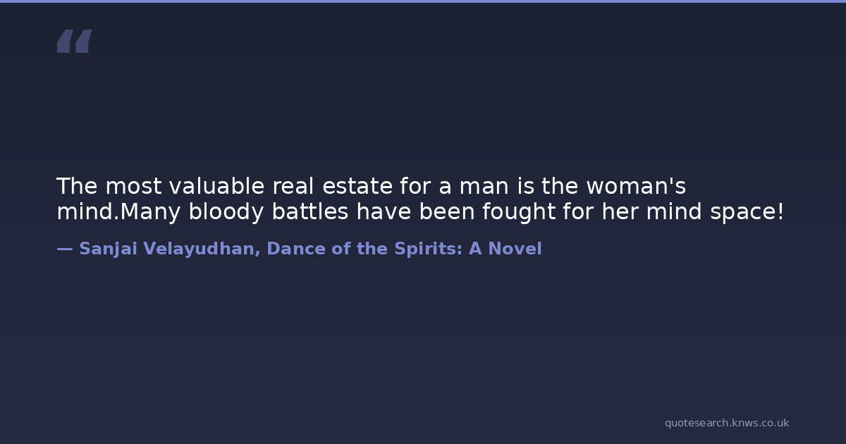 The most valuable real estate for a man is the woman's mind.Many bloody battles have been fought for her mind space!