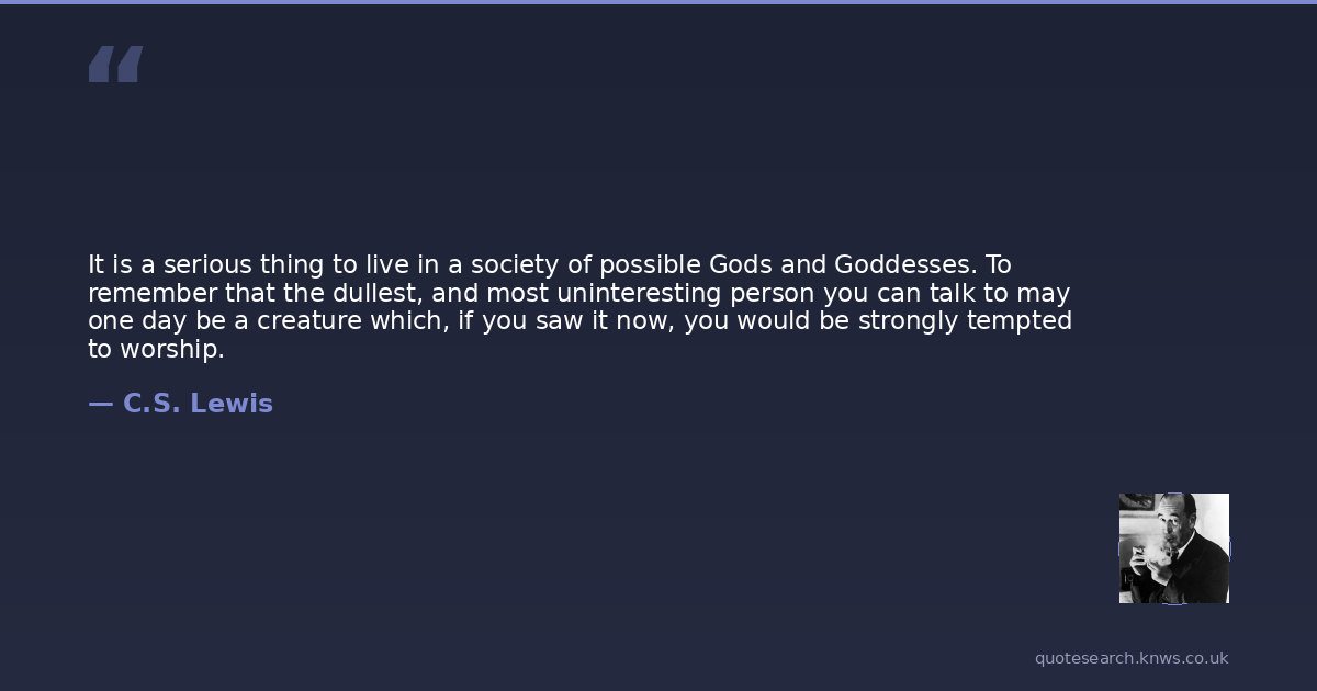 It is a serious thing to live in a society of possible Gods and Goddesses. To remember that the dullest, and most uninteresting person you can talk to may one day be a creature which, if you saw it now, you would be strongly tempted to worship.