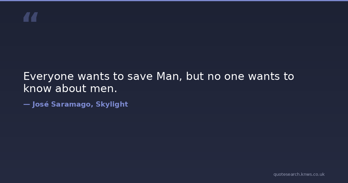 Everyone wants to save Man, but no one wants to know about men. mankind Download Image Share on X Share on Facebook Copy Link