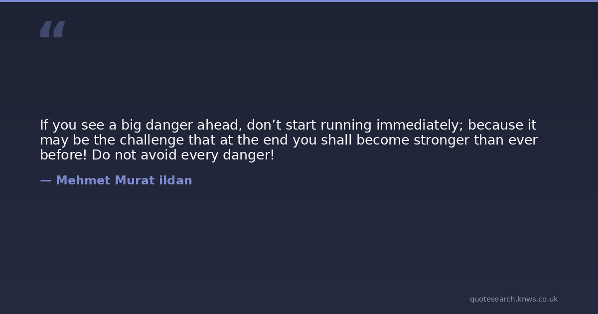 If you see a big danger ahead, don’t start running immediately; because it may be the challenge that at the end you shall become stronger than ever before! Do not avoid every danger!
