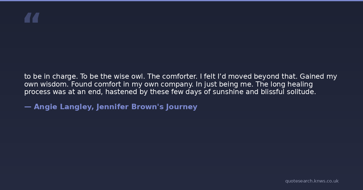 to be in charge. To be the wise owl. The comforter. I felt I’d moved beyond that. Gained my own wisdom. Found comfort in my own company. In just being me. The long healing process was at an end, hastened by these few days of sunshine and blissful solitude.