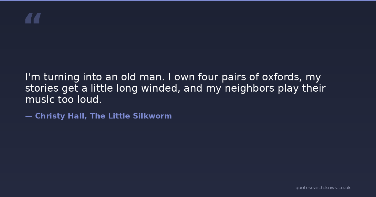 I'm turning into an old man. I own four pairs of oxfords, my stories get a little long winded, and my neighbors play their music too loud.