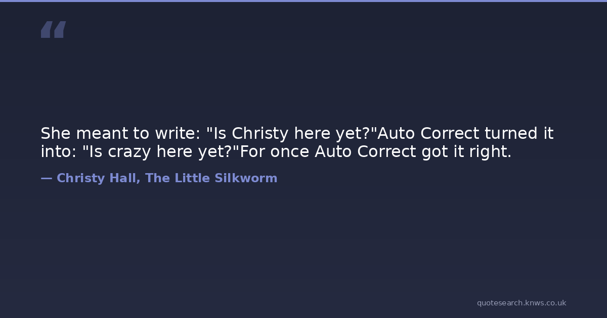 She meant to write: "Is Christy here yet?"Auto Correct turned it into: "Is crazy here yet?"For once Auto Correct got it right.