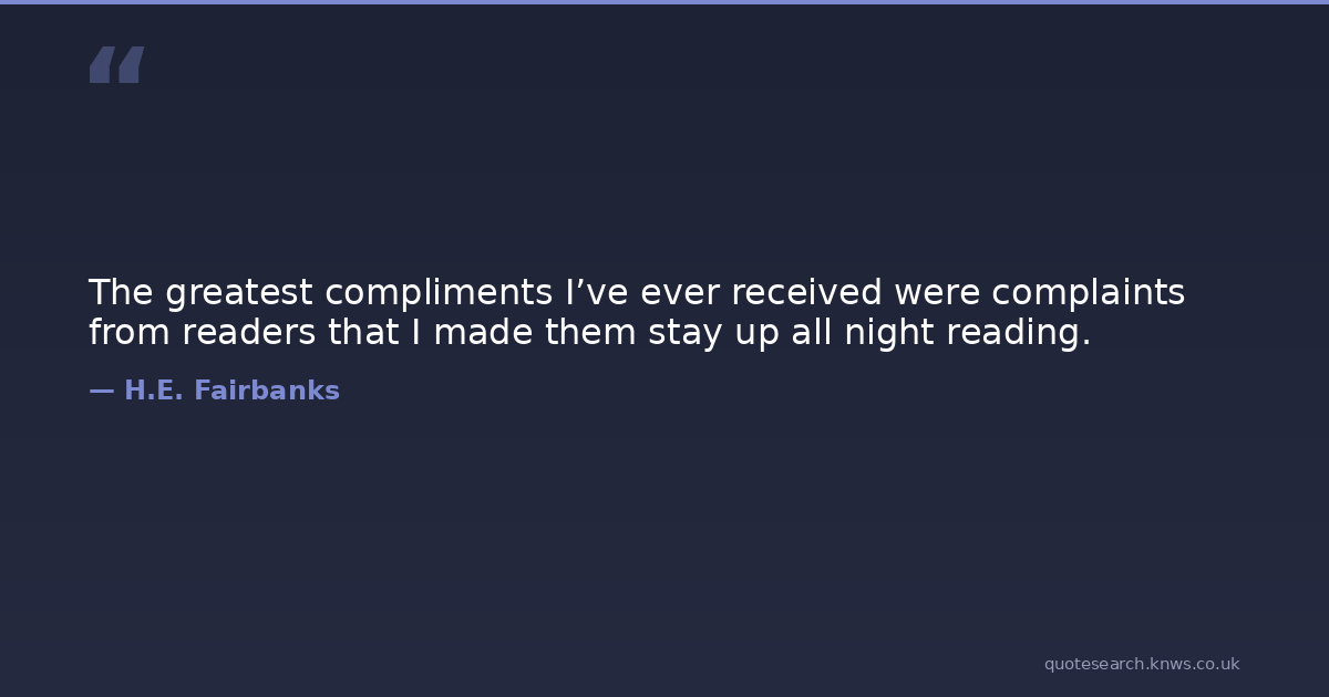 The greatest compliments I’ve ever received were complaints from readers that I made them stay up all night reading. suspense suspense-thriller writing Download Image Share on X Share on Facebook Copy Link