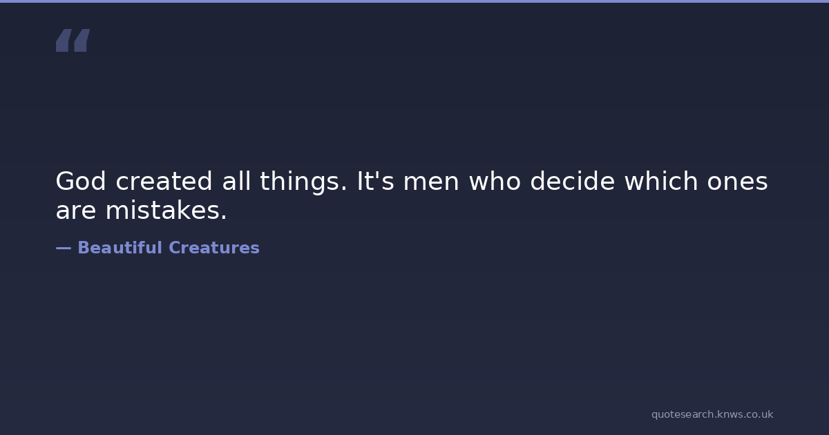 God created all things. It's men who decide which ones are mistakes. beautiful-creatures book castor love movie quotes Download Image Share on X Share on Facebook Copy Link