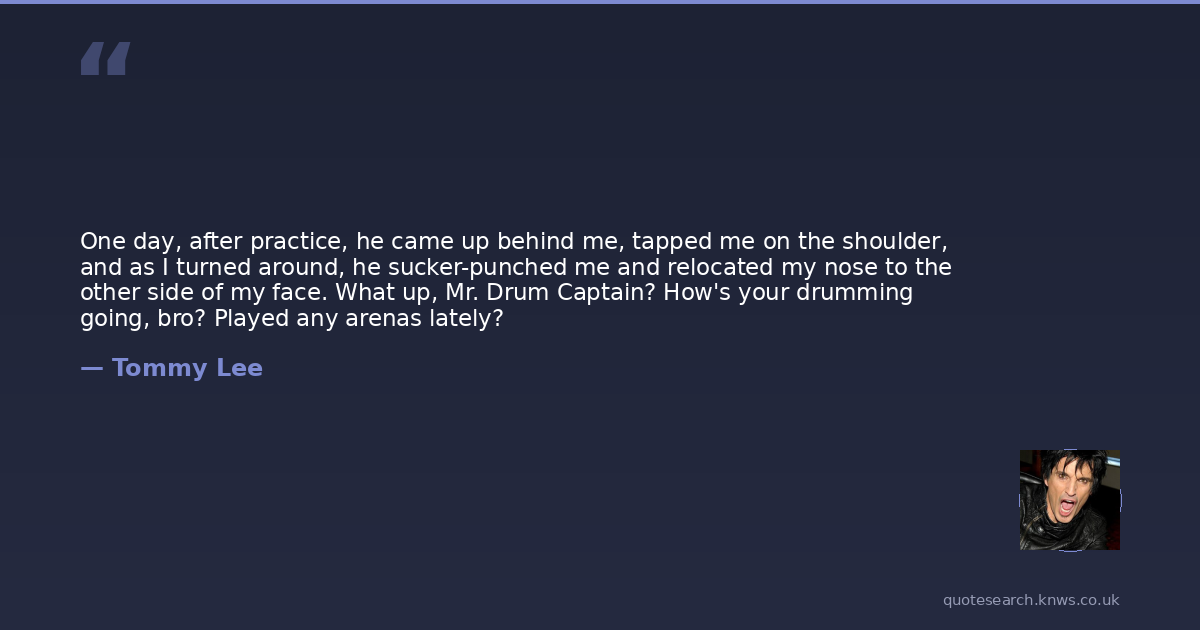 One day, after practice, he came up behind me, tapped me on the shoulder, and as I turned around, he sucker-punched me and relocated my nose to the other side of my face. What up, Mr. Drum Captain? How's your drumming going, bro? Played any arenas lately?