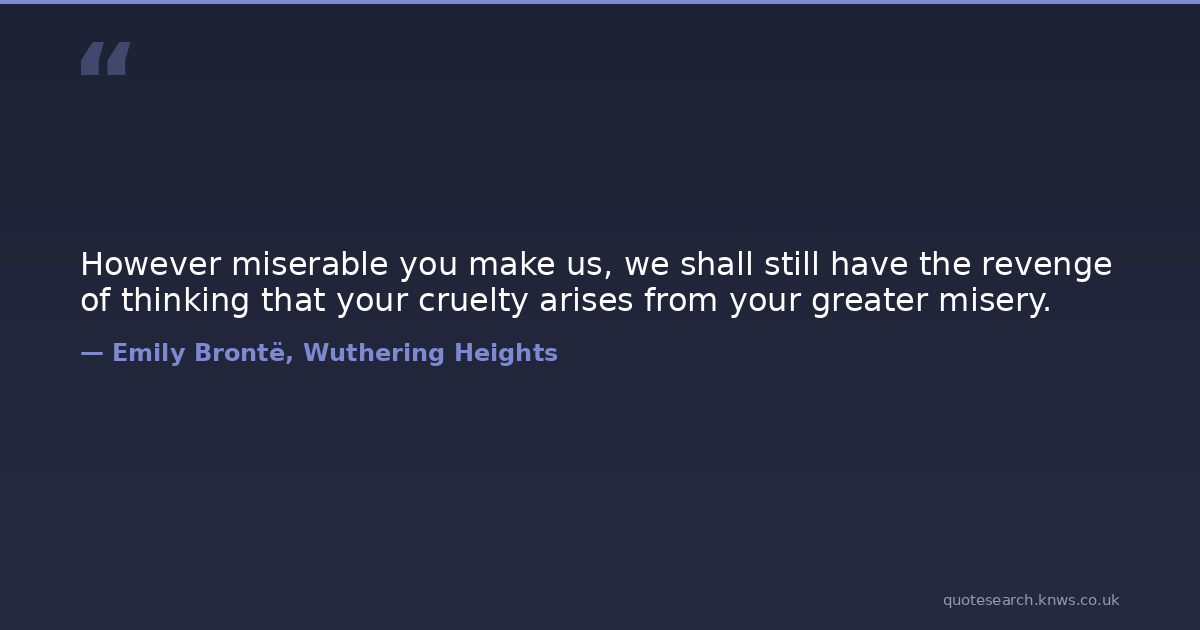 However miserable you make us, we shall still have the revenge of thinking that your cruelty arises from your greater misery.