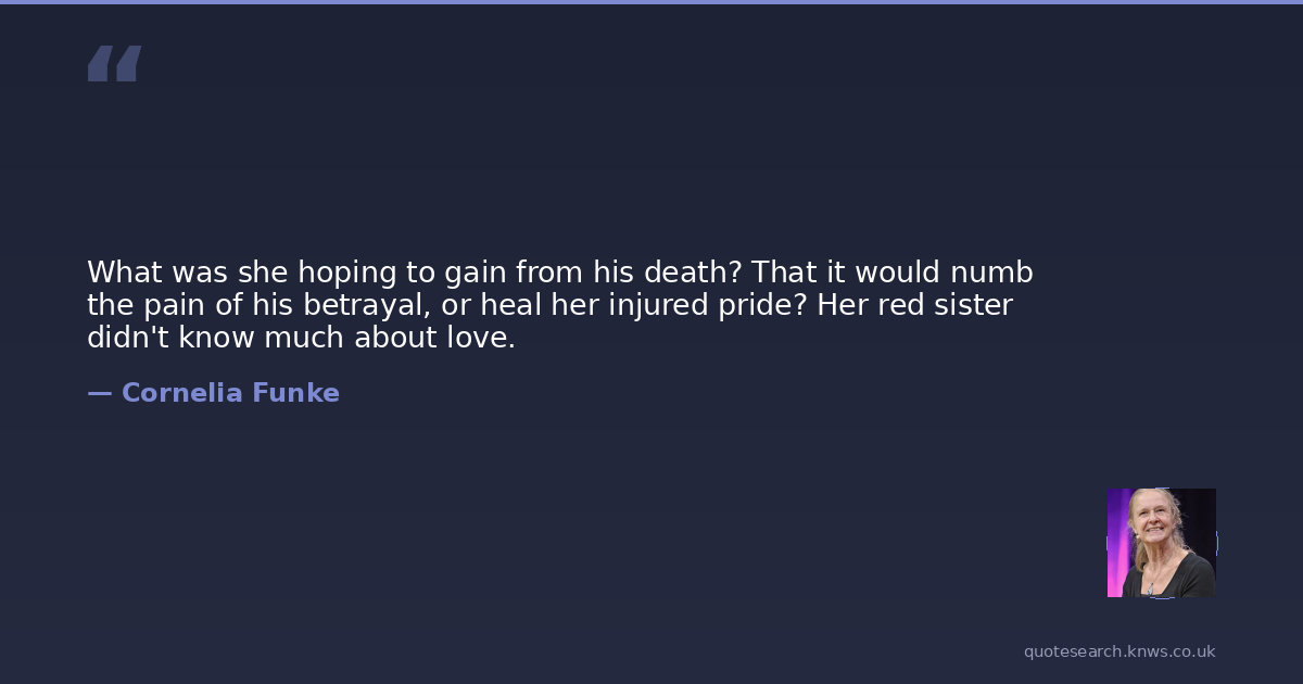 What was she hoping to gain from his death? That it would numb the pain of his betrayal, or heal her injured pride? Her red sister didn't know much about love.
