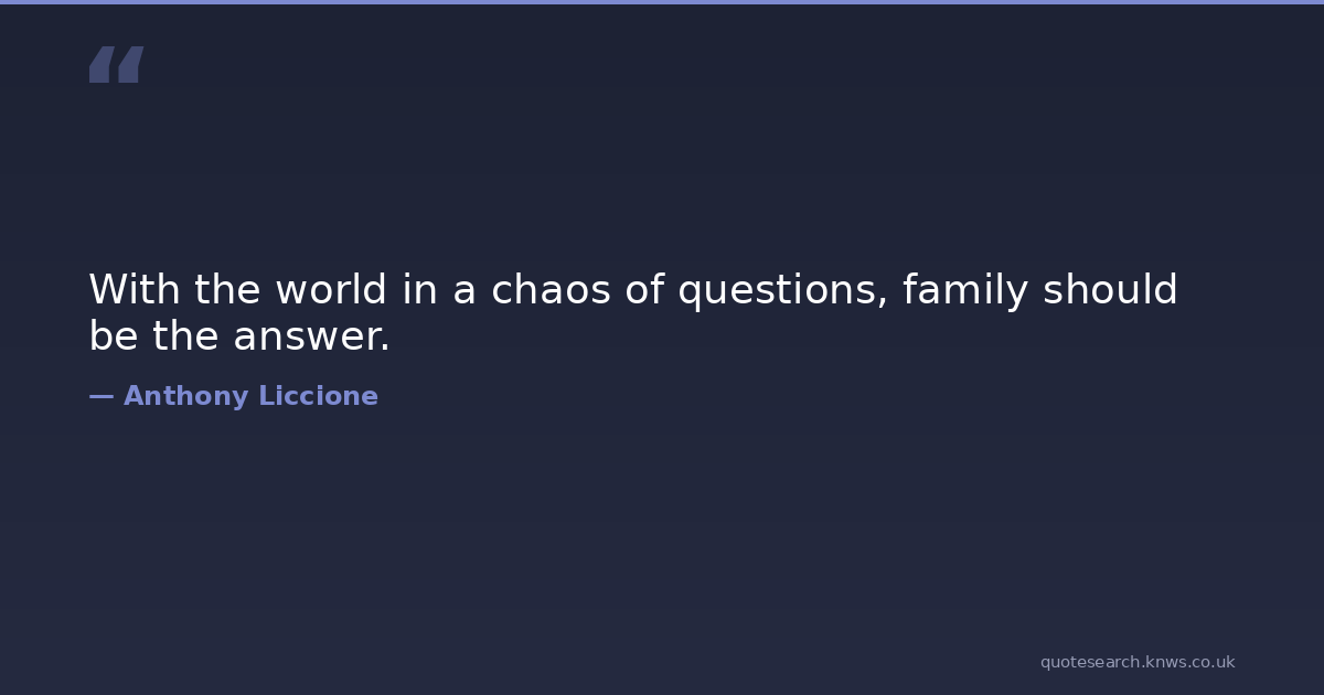 With the world in a chaos of questions, family should be the answer.