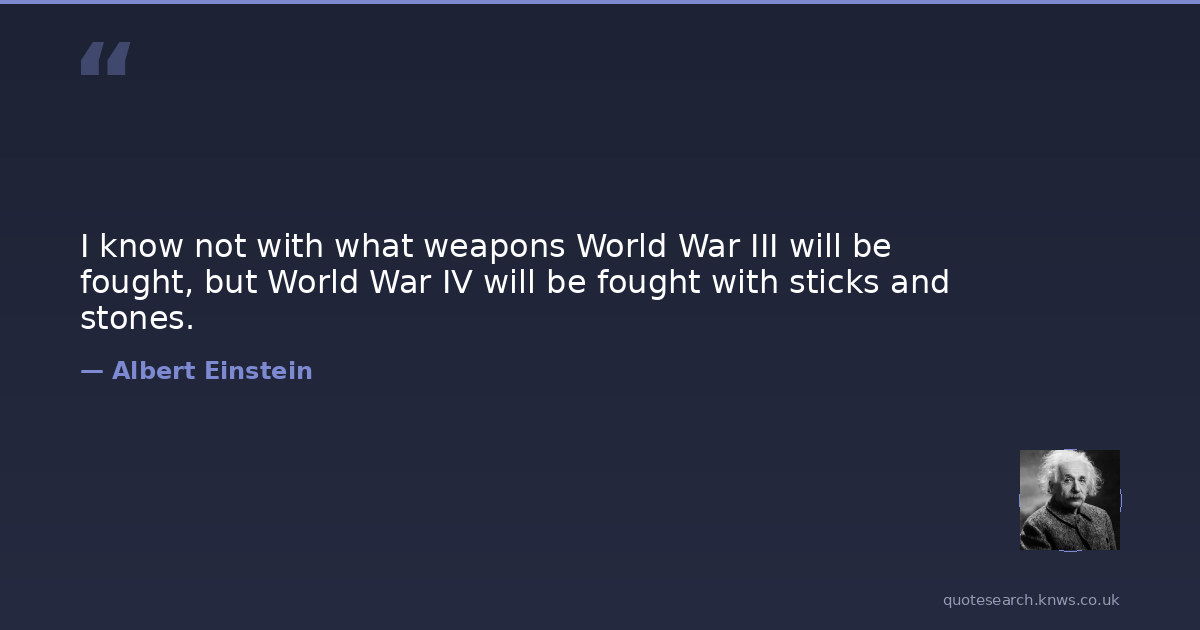 I know not with what weapons World War III will be fought, but World War IV will be fought with sticks and stones.