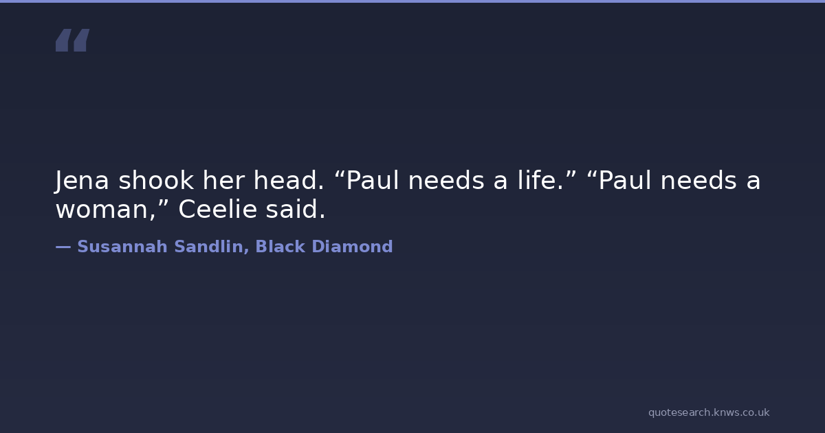 Jena shook her head. “Paul needs a life.” “Paul needs a woman,” Ceelie said.