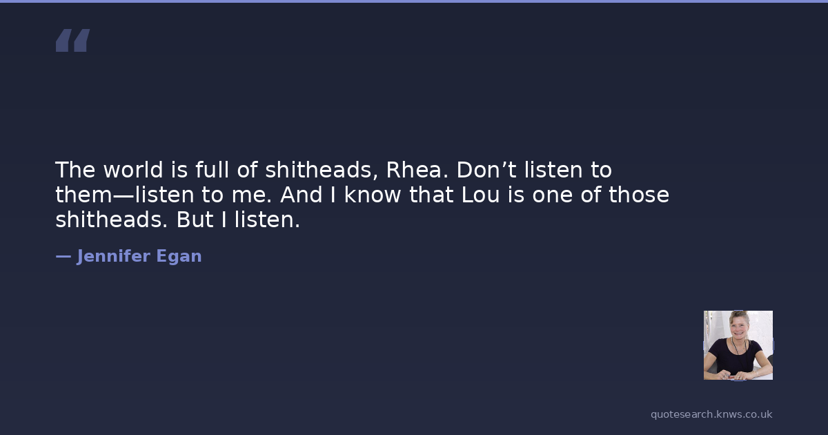 The world is full of shitheads, Rhea. Don’t listen to them—listen to me. And I know that Lou is one of those shitheads. But I listen.