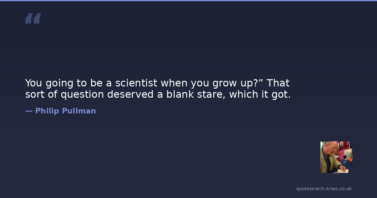 You going to be a scientist when you grow up?” That sort of question deserved a blank stare, which it got.