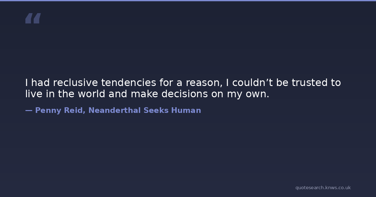 I had reclusive tendencies for a reason, I couldn’t be trusted to live in the world and make decisions on my own.