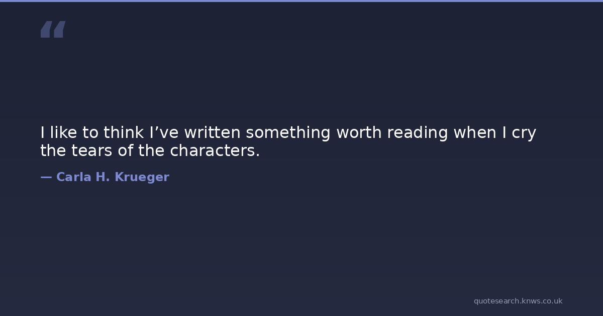 I like to think I’ve written something worth reading when I cry the tears of the characters.
