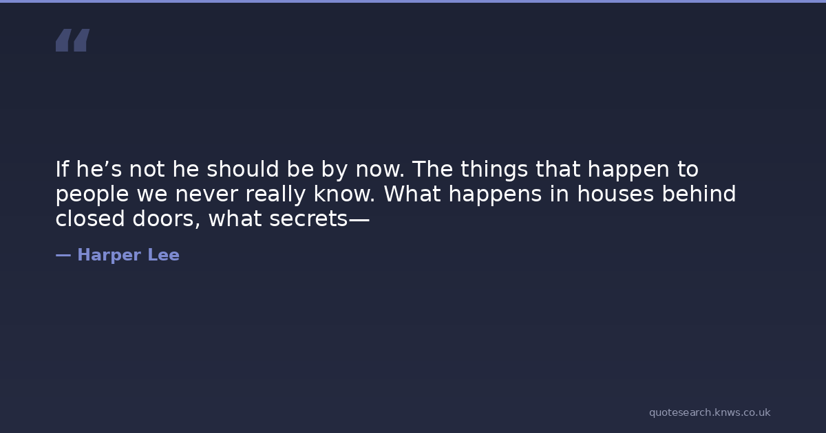 If he’s not he should be by now. The things that happen to people we never really know. What happens in houses behind closed doors, what secrets—