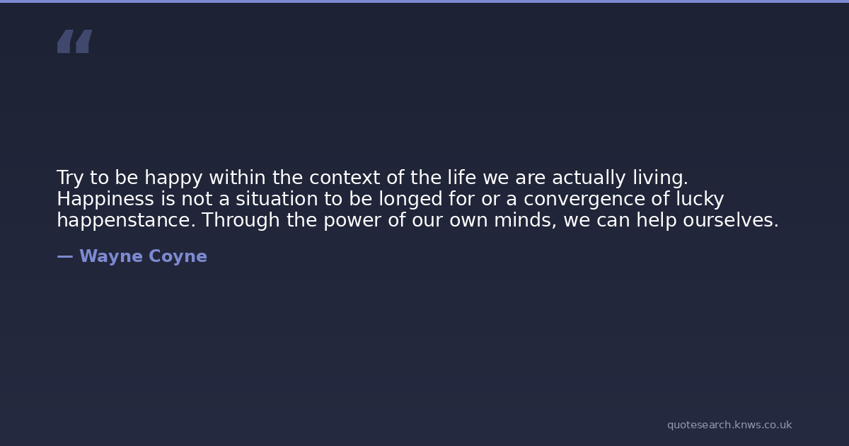 Try to be happy within the context of the life we are actually living. Happiness is not a situation to be longed for or a convergence of lucky happenstance. Through the power of our own minds, we can help ourselves.