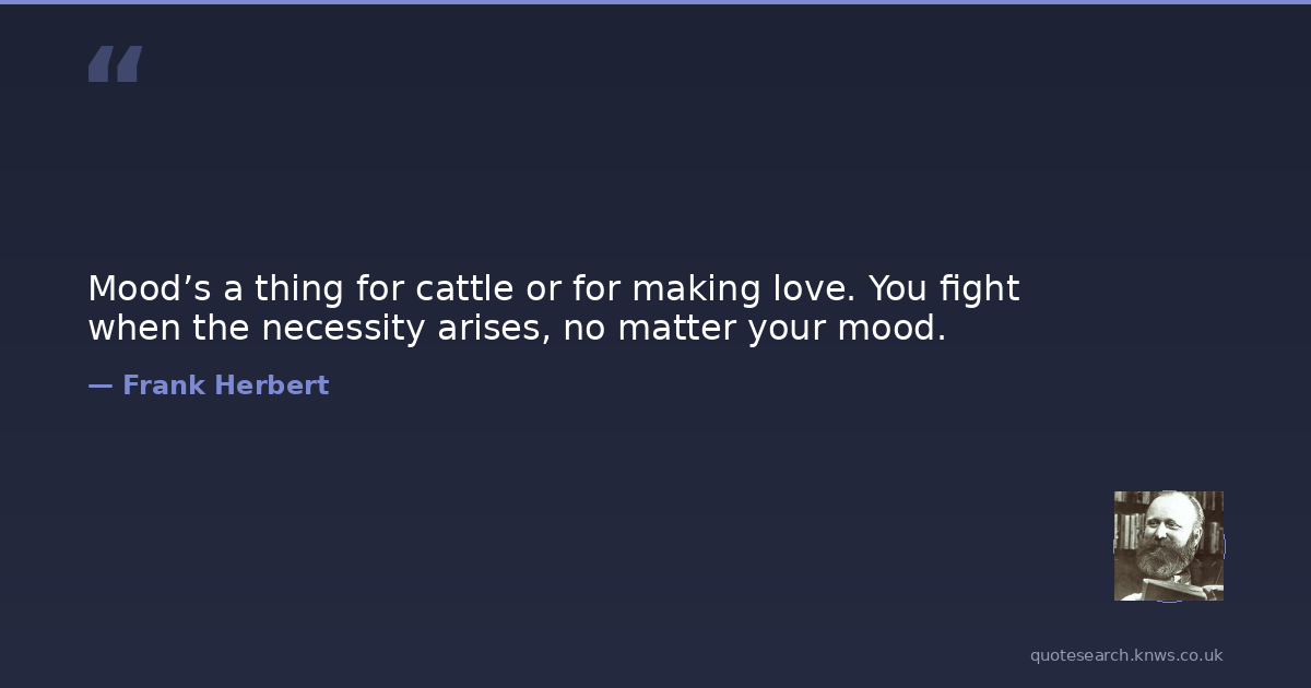 Mood’s a thing for cattle or for making love. You fight when the necessity arises, no matter your mood.