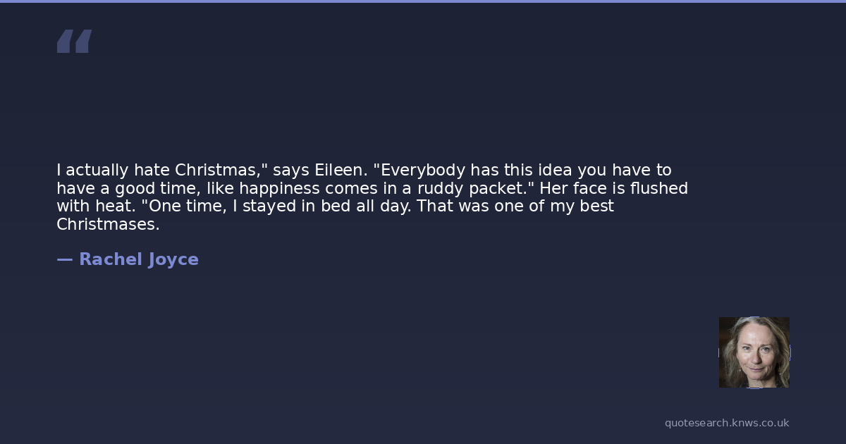 I actually hate Christmas," says Eileen. "Everybody has this idea you have to have a good time, like happiness comes in a ruddy packet." Her face is flushed with heat. "One time, I stayed in bed all day. That was one of my best Christmases.