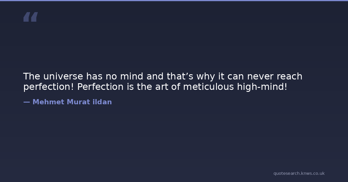 The universe has no mind and that’s why it can never reach perfection! Perfection is the art of meticulous high-mind!