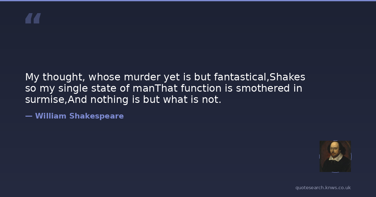 My thought, whose murder yet is but fantastical,Shakes so my single state of manThat function is smothered in surmise,And nothing is but what is not.
