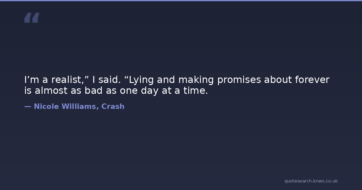 I’m a realist,” I said. “Lying and making promises about forever is almost as bad as one day at a time.