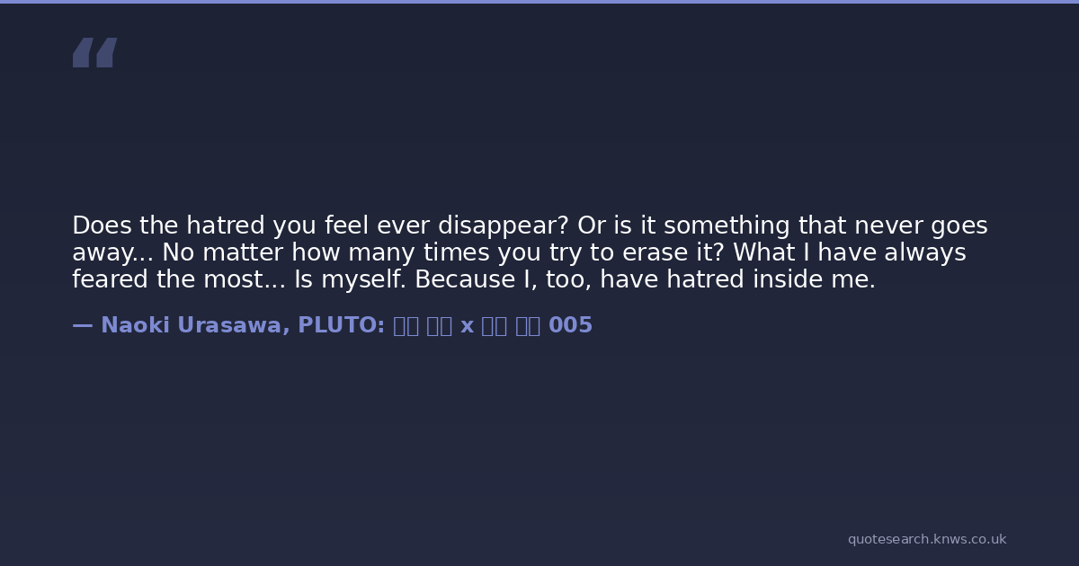 Does the hatred you feel ever disappear? Or is it something that never goes away... No matter how many times you try to erase it? What I have always feared the most... Is myself. Because I, too, have hatred inside me.