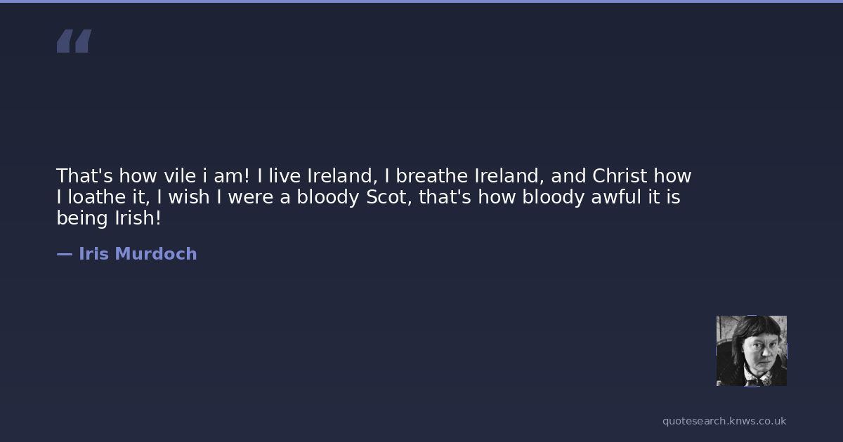 That's how vile i am! I live Ireland, I breathe Ireland, and Christ how I loathe it, I wish I were a bloody Scot, that's how bloody awful it is being Irish!