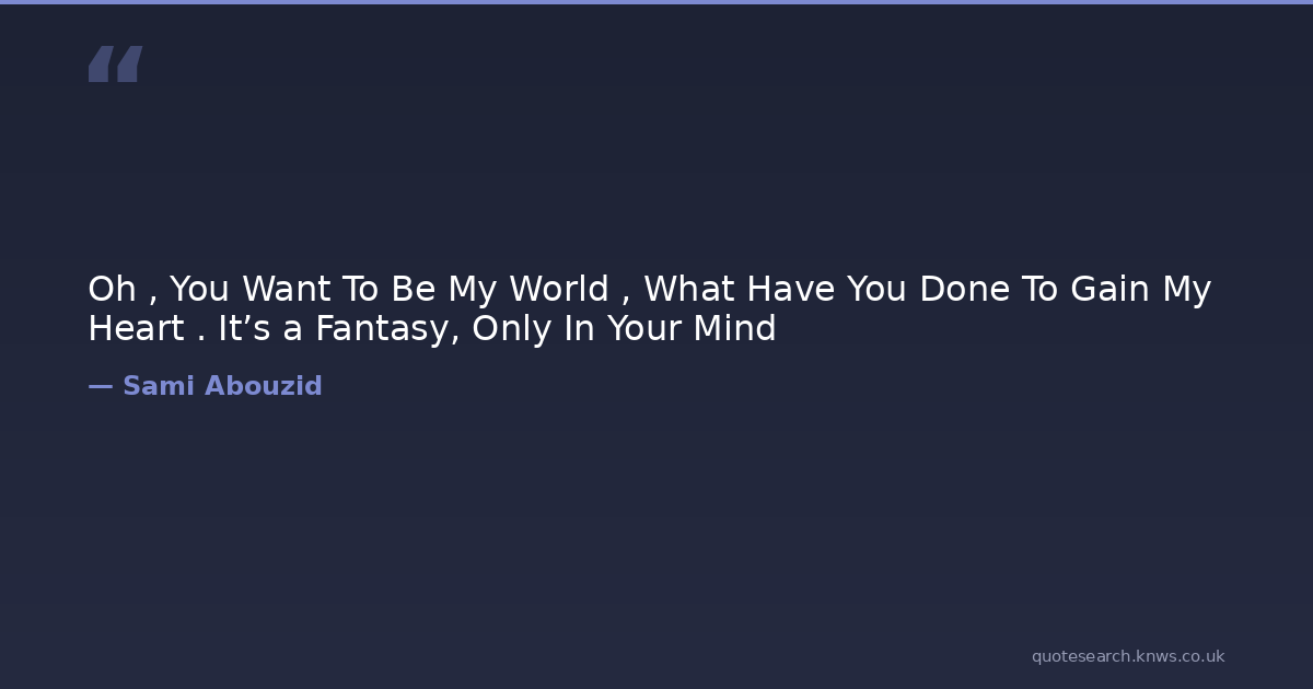 Oh , You Want To Be My World , What Have You Done To Gain My Heart . It’s a Fantasy, Only In Your Mind