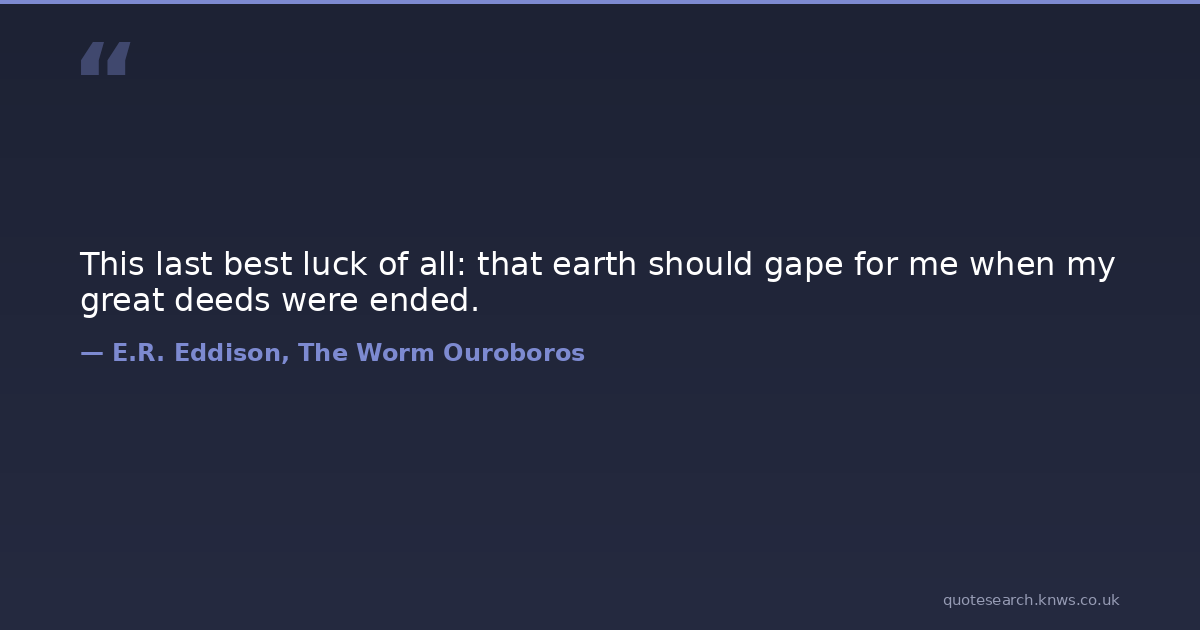 This last best luck of all: that earth should gape for me when my great deeds were ended.