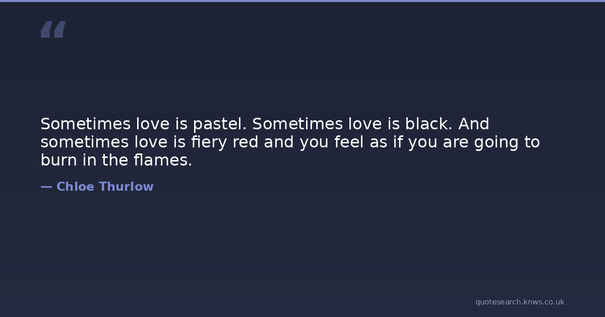 Sometimes love is pastel. Sometimes love is black. And sometimes love is fiery red and you feel as if you are going to burn in the flames.