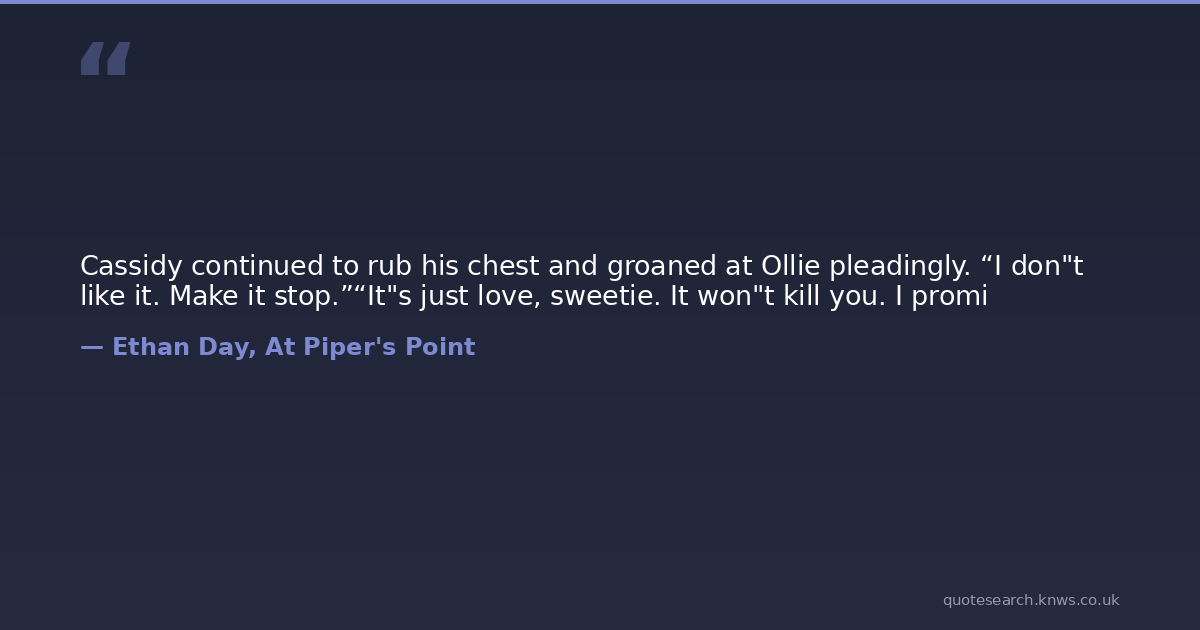 Cassidy continued to rub his chest and groaned at Ollie pleadingly. “I don"t like it. Make it stop.”“It"s just love, sweetie. It won"t kill you. I promi