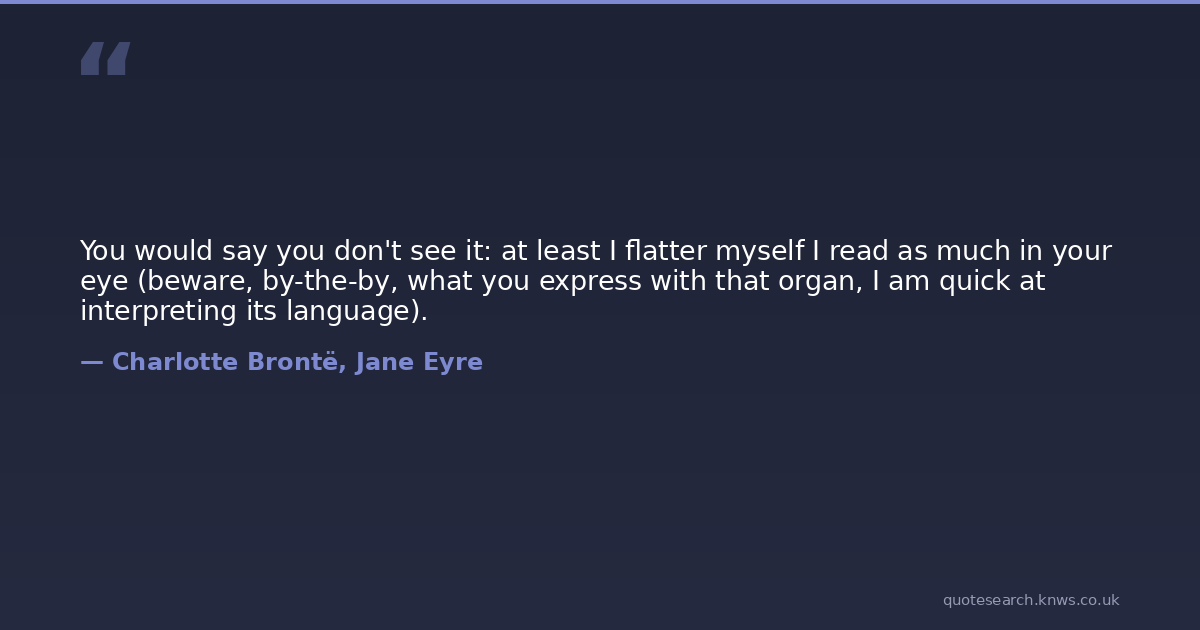 You would say you don't see it: at least I flatter myself I read as much in your eye (beware, by-the-by, what you express with that organ, I am quick at interpreting its language).