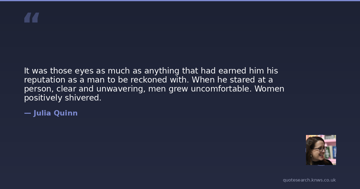 It was those eyes as much as anything that had earned him his reputation as a man to be reckoned with. When he stared at a person, clear and unwavering, men grew uncomfortable. Women positively shivered.