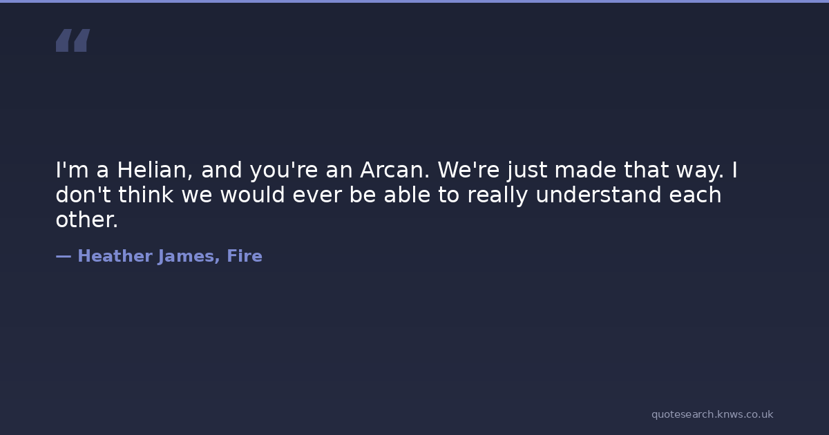 I'm a Helian, and you're an Arcan. We're just made that way. I don't think we would ever be able to really understand each other.