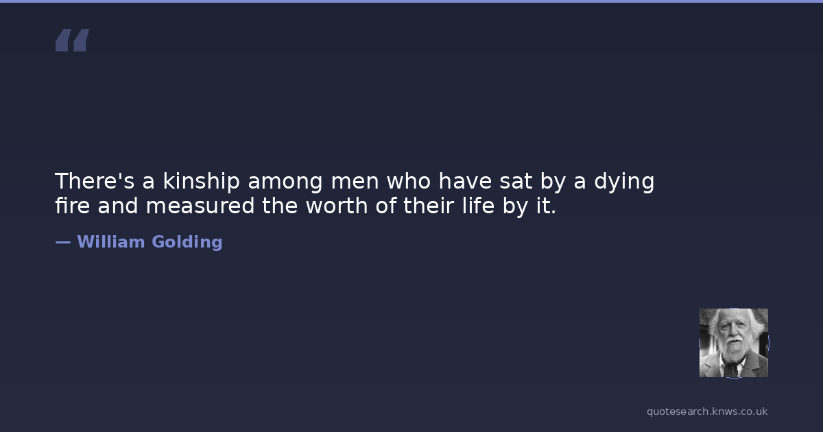 There's a kinship among men who have sat by a dying fire and measured the worth of their life by it.