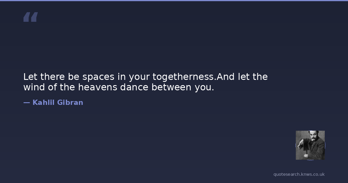 Let there be spaces in your togetherness.And let the wind of the heavens dance between you.