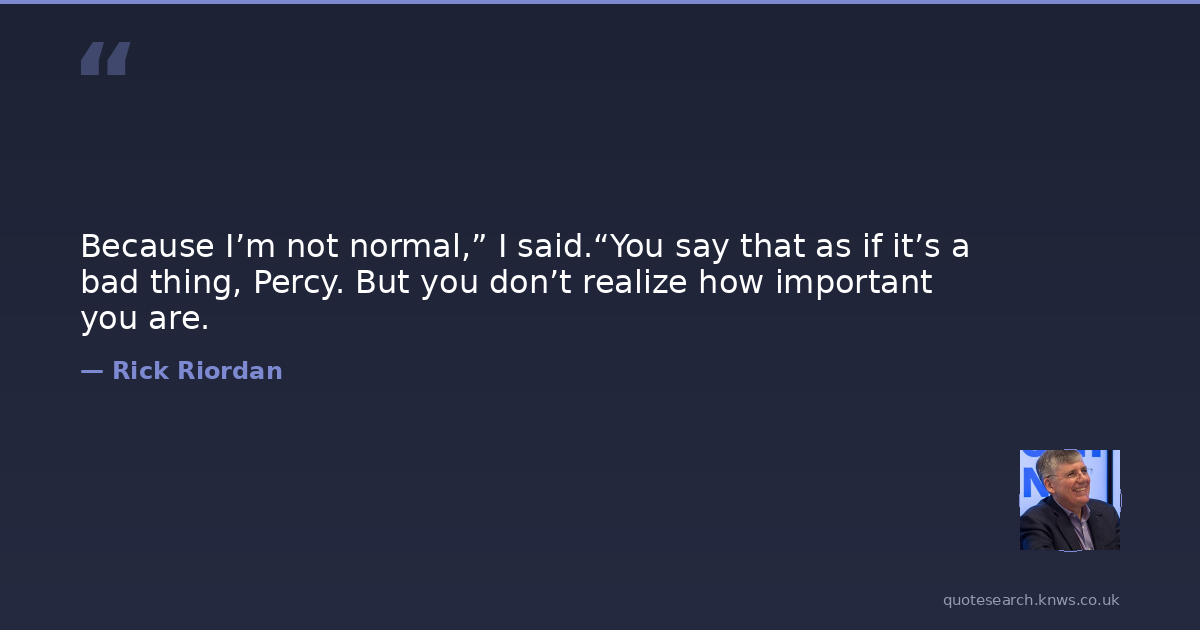 Because I’m not normal,” I said.“You say that as if it’s a bad thing, Percy. But you don’t realize how important you are.