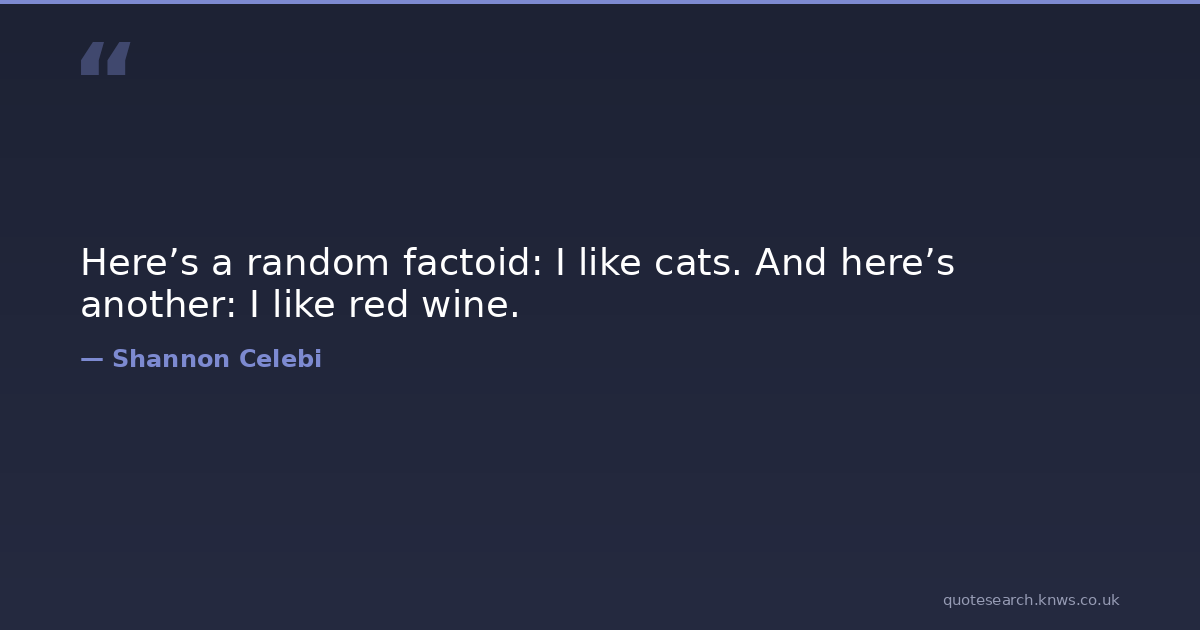 Here’s a random factoid: I like cats. And here’s another: I like red wine. cat cats red-wine wine Download Image Share on X Share on Facebook Copy Link