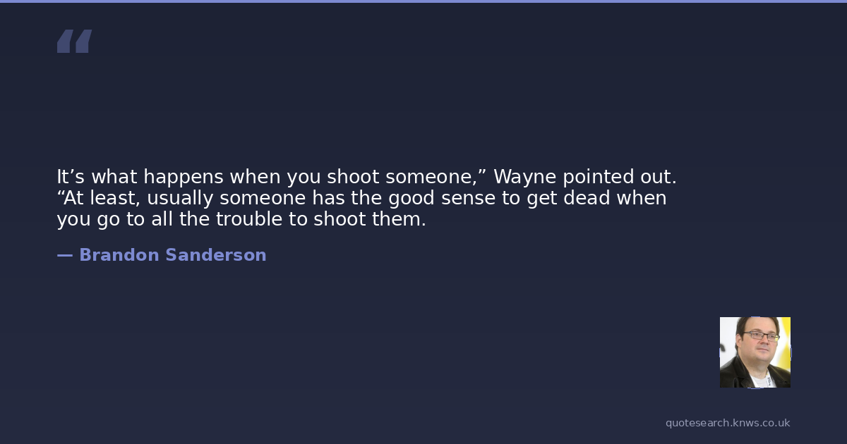 It’s what happens when you shoot someone,” Wayne pointed out. “At least, usually someone has the good sense to get dead when you go to all the trouble to shoot them.