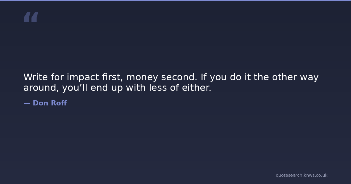 Write for impact first, money second. If you do it the other way around, you’ll end up with less of either.