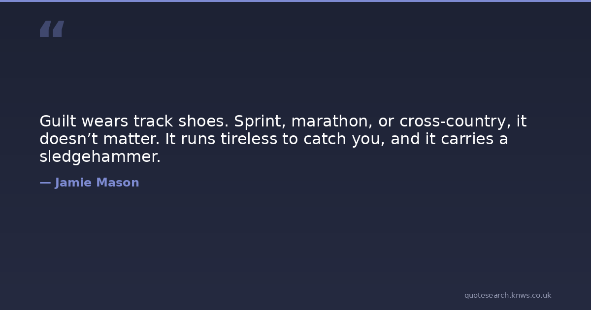 Guilt wears track shoes. Sprint, marathon, or cross-country, it doesn’t matter. It runs tireless to catch you, and it carries a sledgehammer.