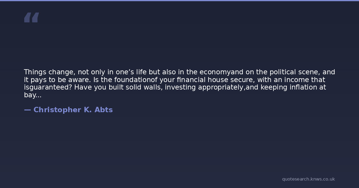 Things change, not only in one’s life but also in the economyand on the political scene, and it pays to be aware. Is the foundationof your financial house secure, with an income that isguaranteed? Have you built solid walls, investing appropriately,and keeping inflation at bay? Are you living under a reliableroof, with assets positioned to grow? Is your house insulatedand sturdy, safe from any economic storm?