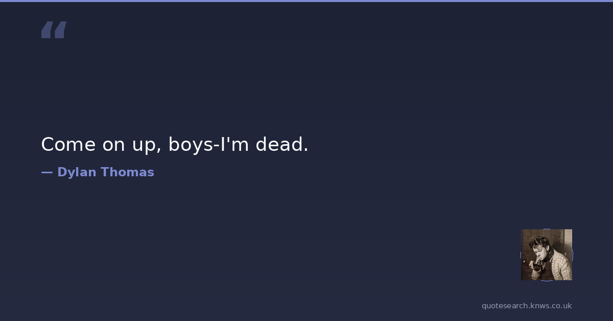 Dylan Thomas was a 20th-century Welsh poet and writer. Dylan Marlais Thomas was a Welsh poet and writer, whose works include the poems "Do not go gentle into that good night" and "And death shall have no dominion", as well as the "play for voices" Under Milk Wood. He also wrote stories and radio broadcasts such as A Child's Christmas in Wales and Portrait of the Artist as a Young Dog. Read more on Wikipedia →