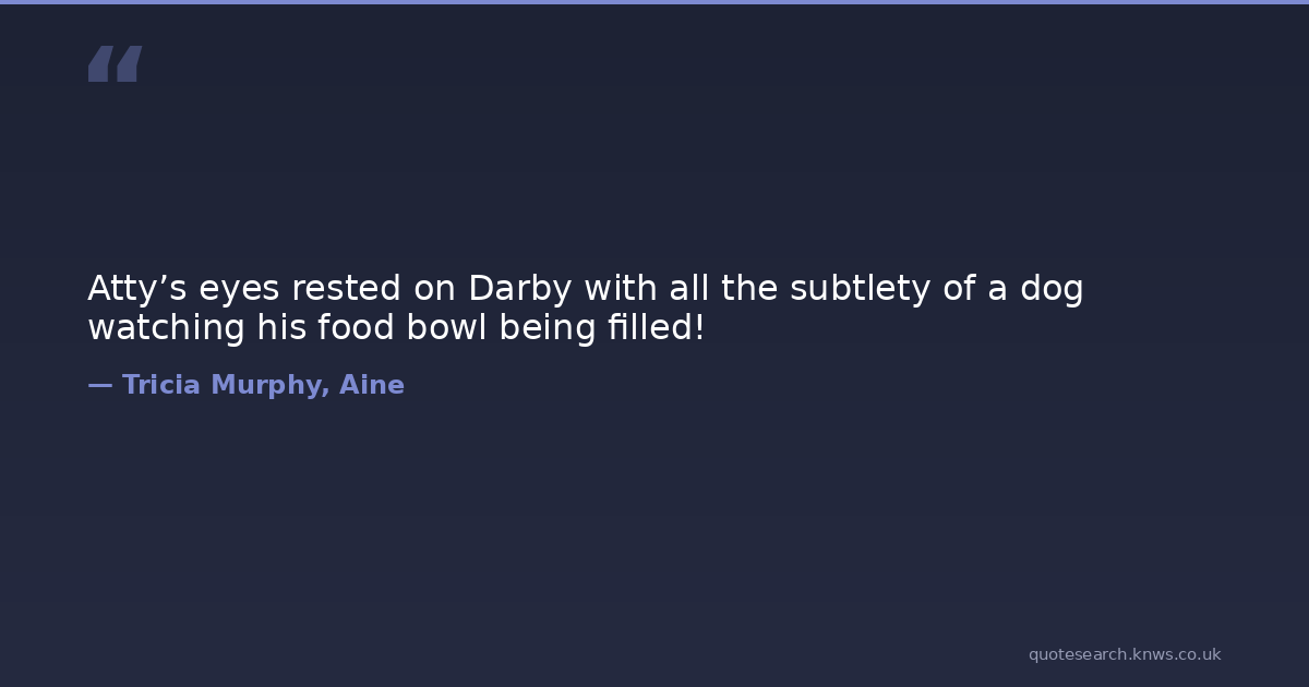 Atty’s eyes rested on Darby with all the subtlety of a dog watching his food bowl being filled!
