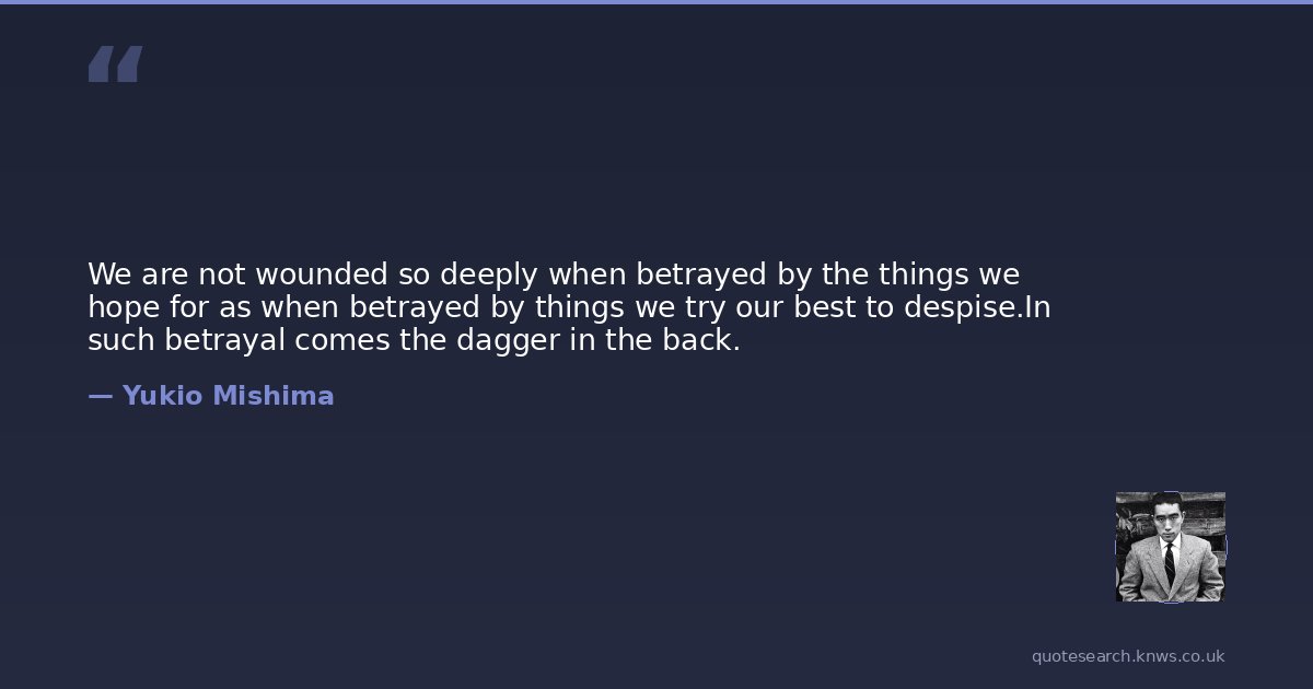 We are not wounded so deeply when betrayed by the things we hope for as when betrayed by things we try our best to despise.In such betrayal comes the dagger in the back.