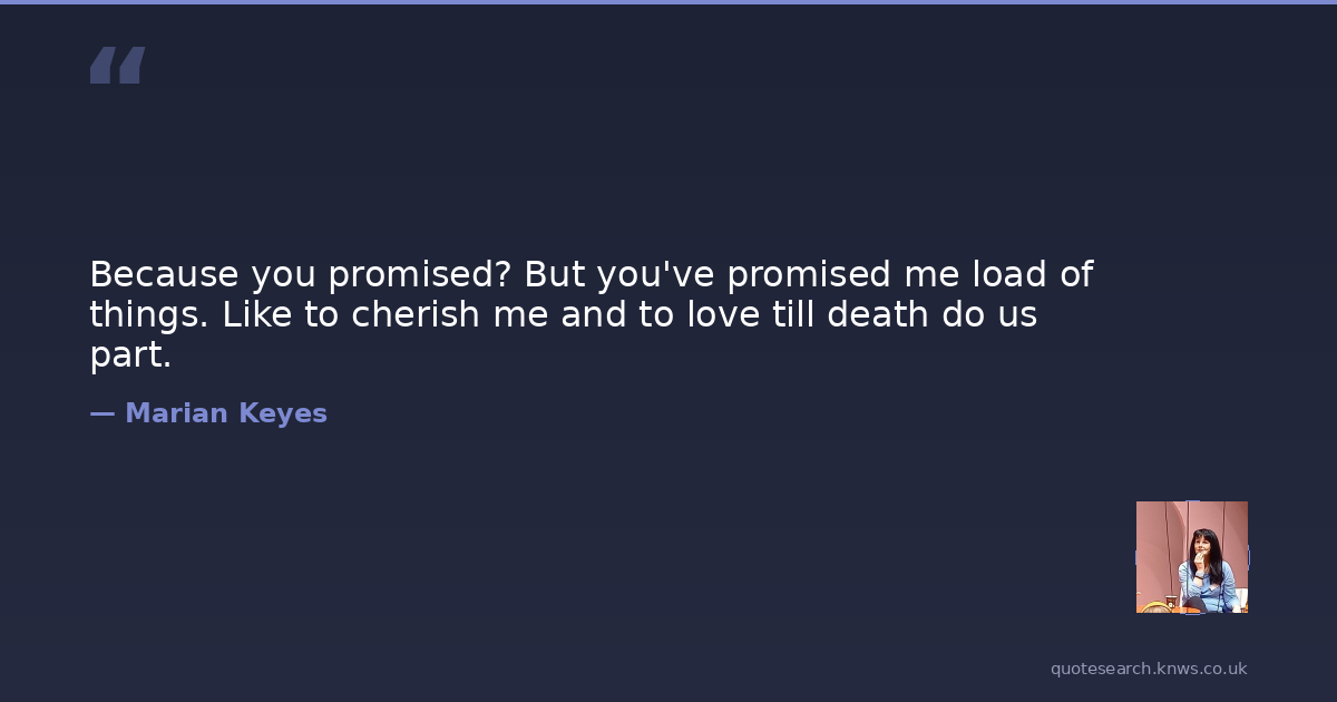 Because you promised? But you've promised me load of things. Like to cherish me and to love till death do us part.
